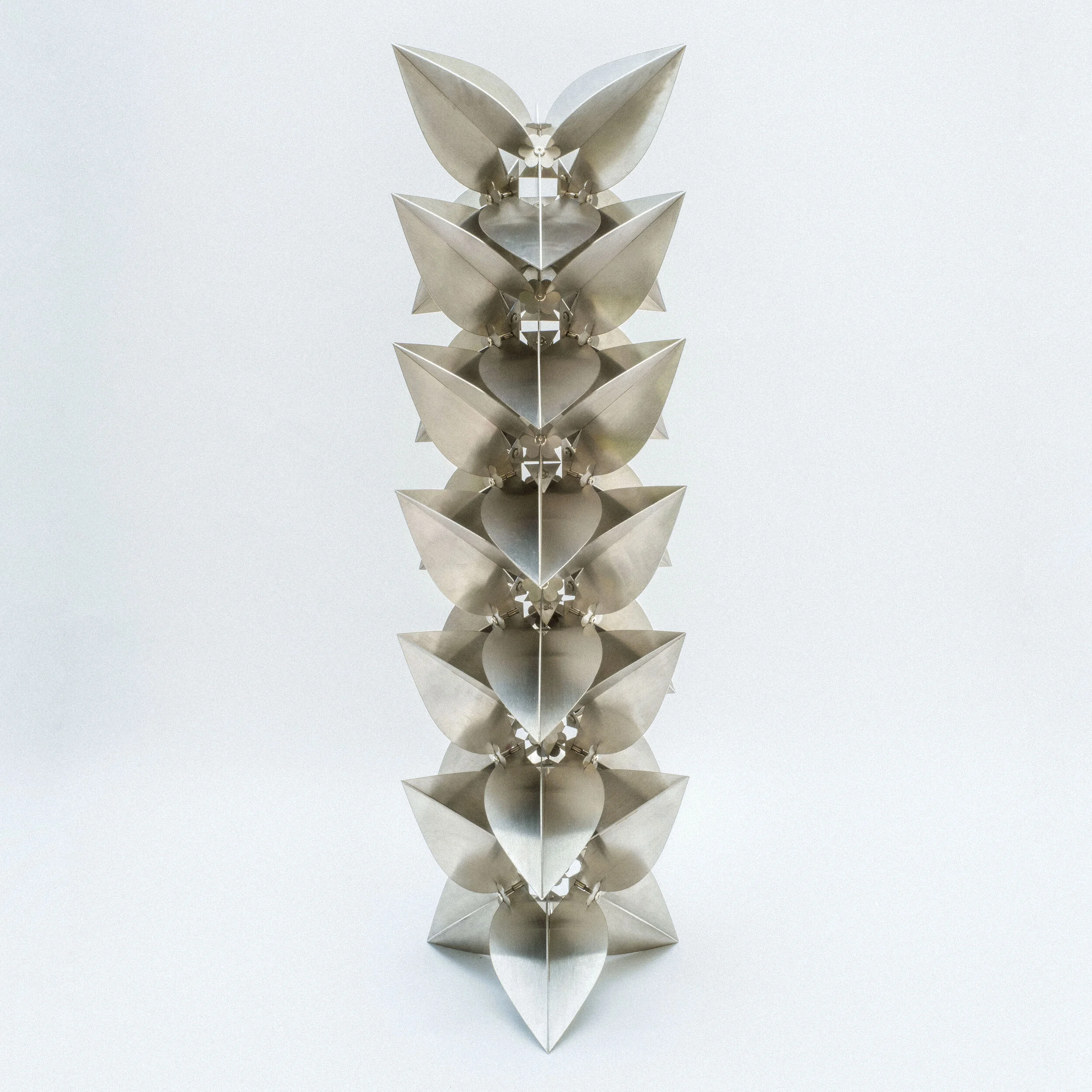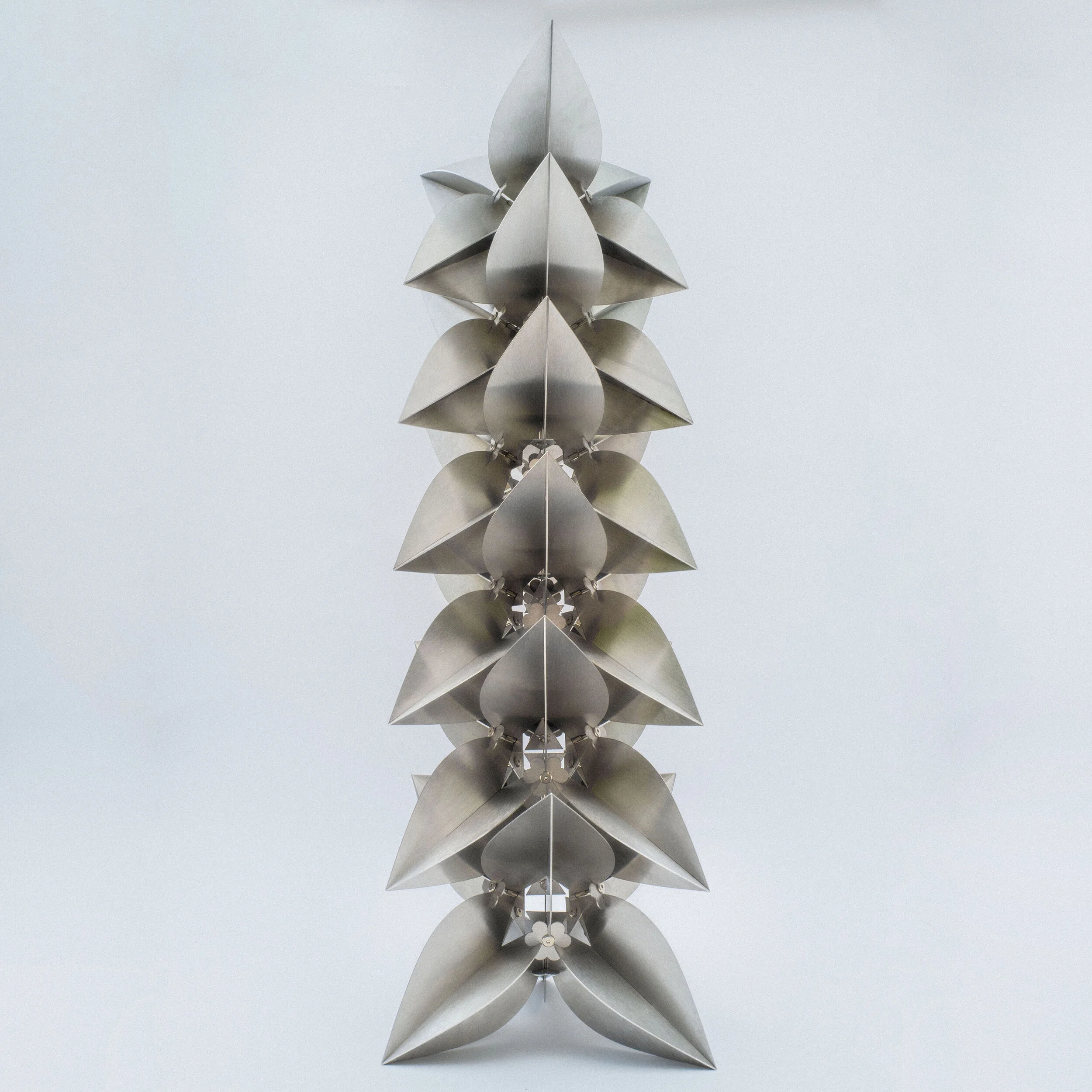 This stainless steel piece, conforms an apparent fragile, yet robust flower shape that reminds us of the bougainvillea, a typical three petal Mexican flower, used in Prehispanic medicine.