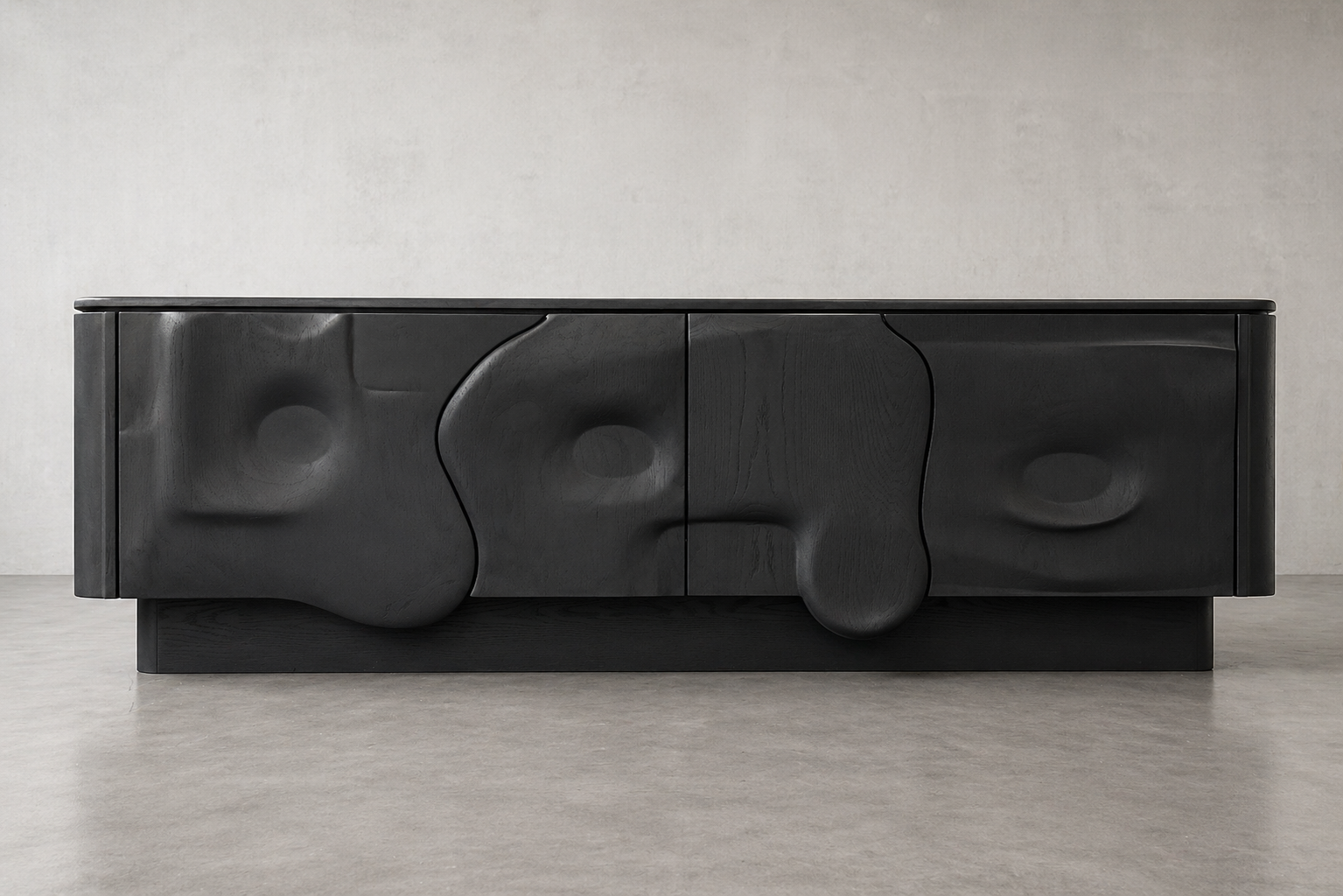 A great collection of handmade cast concrete sculptural cabinets or cupboards. Sculptural functional furniture that is serving perfect for storage and storing precious objects.