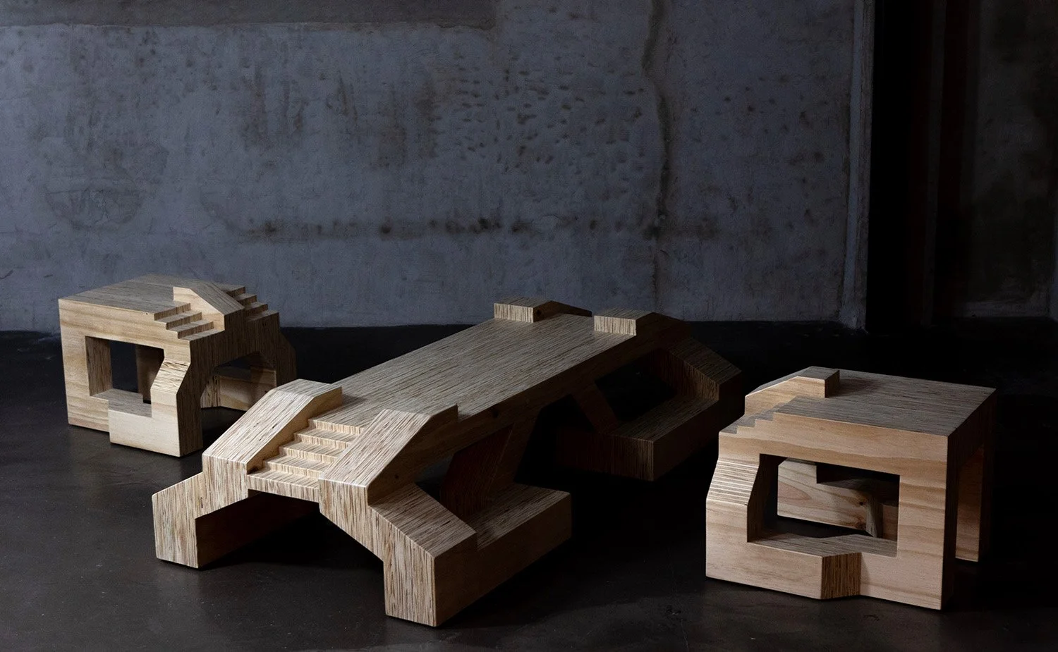Fundamentos del Vacío (Foundations of the Void), is a series where furniture becomes spatial experience. Inspired by brutalism, ritual, and the essence of primitive architecture, the pieces blur the lines between sculpture and function, exploring the interplay of structure and void through precise design and shadow play.